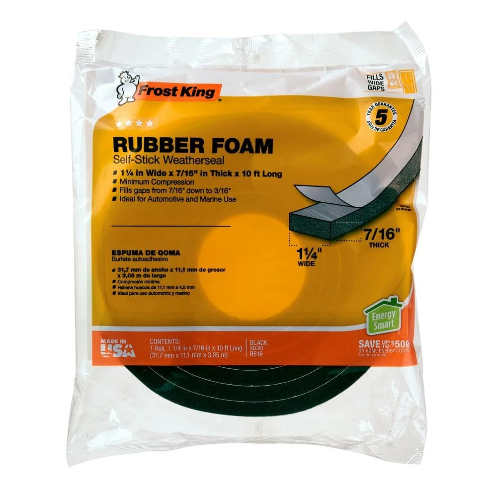 The Thermwell Products Co. Inc. 1-1/4 in. x 7/16 in. x 10 ft. Black High-Density Rubber Foam Weatherstrip Tape delivers a resilient, long-lasting foam rubber seal for use on windows, doors and even cars and boats. This Weather Stripping is waterproof. Helps save energy and money.
