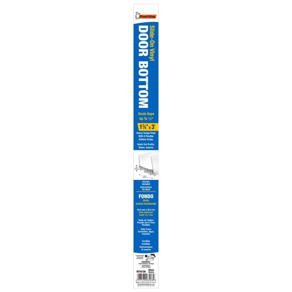 Slide-on vinyl door bottom that can be used on 1-3/4-in wood doors. It is white color. Slide easily on to aluminum or steel doors.