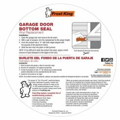 Frost King’s RV18 – 18 Ft. Vinyl Garage Door Bottom Replacement Seal. 2 3/4 in. is an essential garage door maintenance item. This item works similarly to window and door weather stripping for the garage and helps fill gaps and spaces to insulate and weatherize your garage. Garage door seals work much like the classic Frost King Door Sweeps and help to prevent dirt, dust, water, insects and debris from getting in to your garage. This heavy-duty black vinyl weather strip slides into most garage door bottom tracks for easy DIY installation