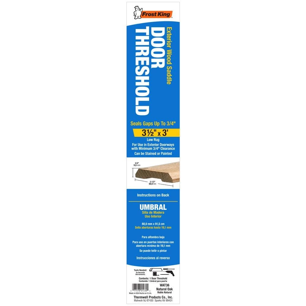 The 3-1/2 in. x 36 in. Saddle Threshold is designed for use in either interior doorways or entryways. Made of oak, it is a good choice for a residential project. The 36 in. size fits many doorways.