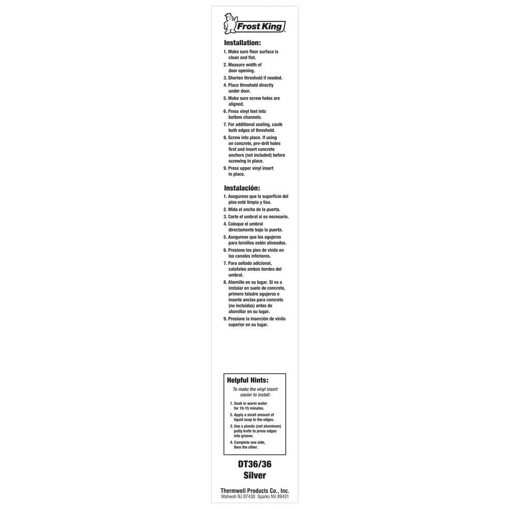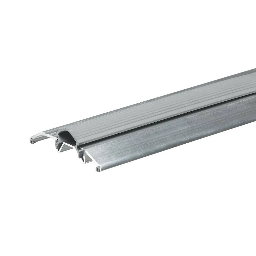 This 3-3/4 in. x 36 in. Aluminum Low-Rug Threshold includes a vinyl insert and is for use as a door weather strip. The threshold will work with rugs up to 3/4 in. and has a silver finish.