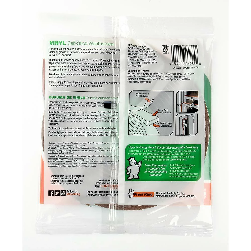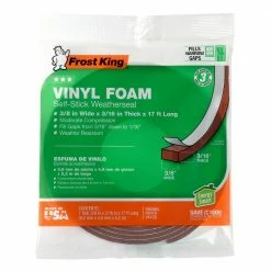 This Thermwell Products Co. Inc. 3/8 in. x 17 ft. Vinyl Foam Weather-Seal Self-Stick Tape features closed-cell construction to provide waterproof and weather-resistant Weather-Seal for gaps around doors and windows, for both the indoors and outdoors.