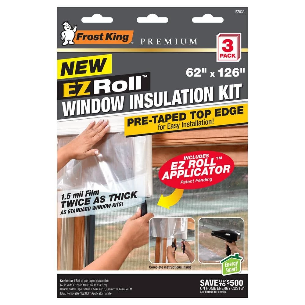 The Frost King Premium, Heavy-Duty, EZ Roll Shrink Window Kit-3 PK is twice as thick as a standard shrink kit. It has a pre-taped edge and roll on applicator for easy installation. The EZ Roll On handle makes application a breeze.