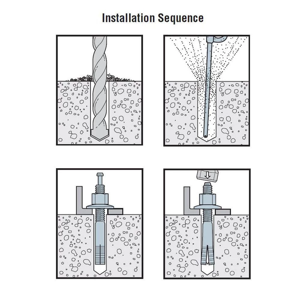 - Caution: oversized holes in the base material will make it difficult to set the anchor and will reduce the anchor’s load capacity