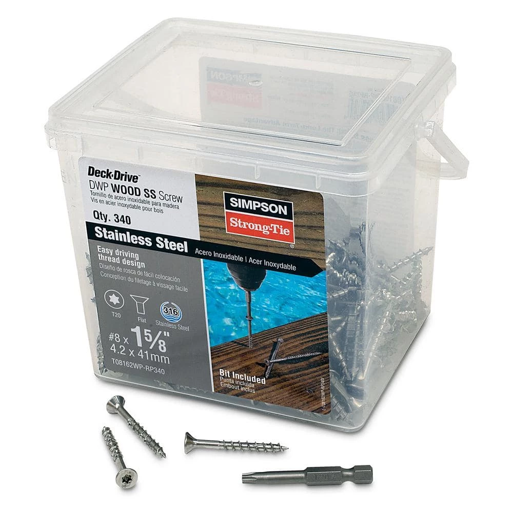 The Deck-Drive DWP Wood SS screw is a powerful fastening solution for deck, dock and general exterior applications where extra corrosion protection is needed. With its specially designed sharp-point and unique box-threads, the DWP is ideally suited for the majority of wood used in today’s deck boards. DWP screws are also offered in a variety of sizes to fasten fascia and trim.