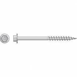 - 1/4-in hex head with 0.37-in diameter integrated washer reduces cam-out and is stamped with the Simpson Strong-Tie “≠” sign and the fastener size for easy identification after installation