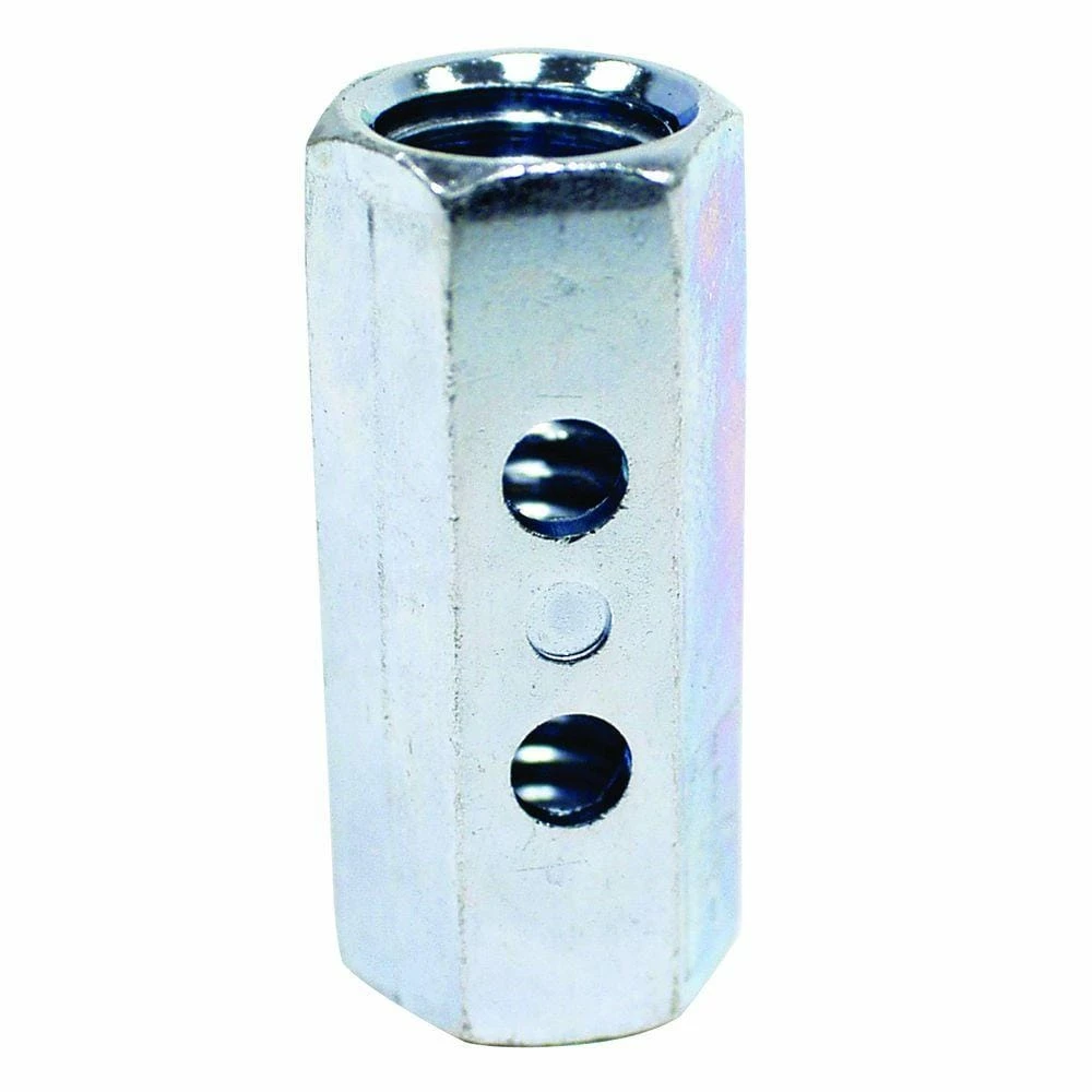 Simpson Strong-Tie coupler nuts are a tested and load-rated method to join threaded rod and anchor bolts. The Witness Hole in each nut provides a means to verify when rods are properly installed. The positive stop feature helps ensure even threading into each end of the nut. The CNW exceeds the specified minimum tensile capacity of corresponding ASTM A36 bolts and threaded rod.