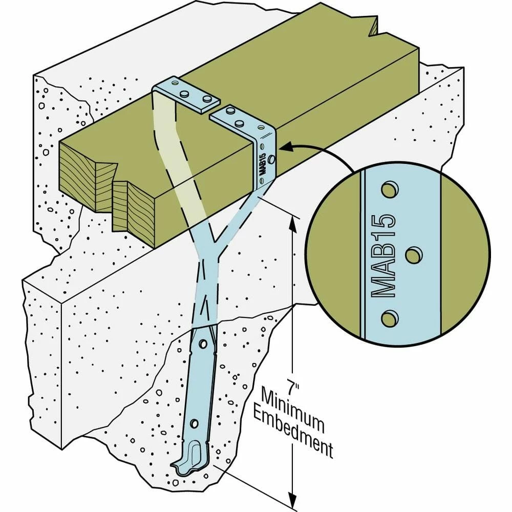 - Anchors mudsill to concrete block, poured walls or slab foundations