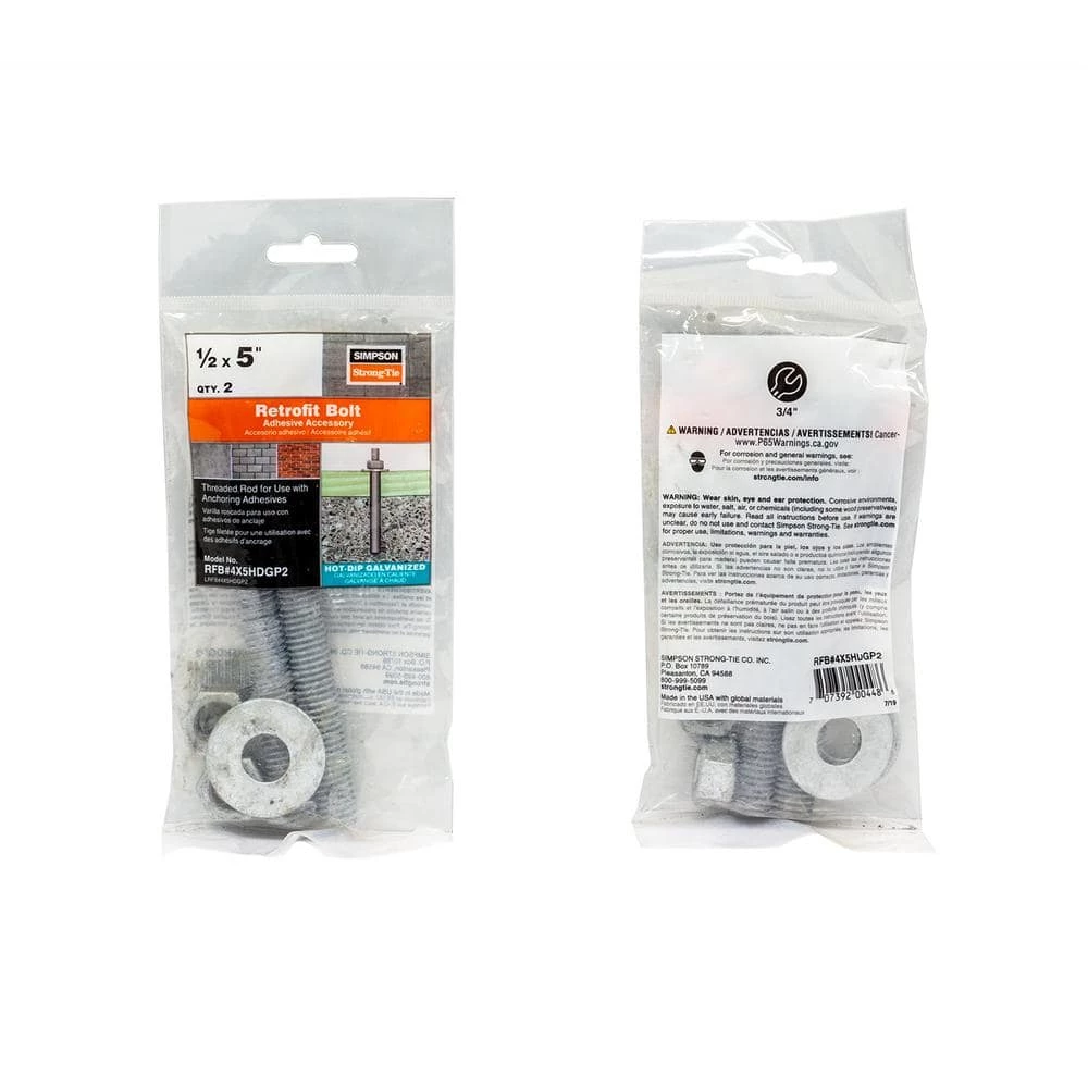 RFBs are clean, oil-free, pre-cut threaded rod, supplied with nut and washer. Offers a complete engineered anchoring system when used with Simpson Strong-Tie adhesive. Inspection is easy; the head is stamped with rod length and “No Equal” symbol for identification after installation.