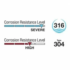 - Made from type 316 stainless steel for superior corrosion resistance