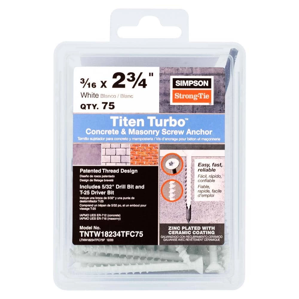 The Titen Turbo screw anchor is fast and easy to install, and incredibly reliable in its performance. The secret behind the performance of the Titen Turbo lies in a thread design that lowers driving torque while providing superior holding power. The revolutionary Torque Reduction Channel between the threads gives drilling dust a place to go, thereby significantly reducing torque-related issues like binding, stripping and snapping. This screw anchor delivers consistently trouble-free installation and fastening strength you can depend on.